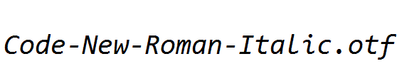 Tips:Code-New-Roman-Italic Font copyright belongs to the font developer. Commercial businesses must contact the copyright owner to authorize themselves, otherwise legal responsibility is borne by themselves.