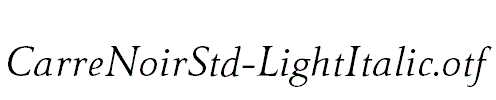 Tips:CarreNoirStd-LightItalic.otf Font copyright belongs to the font developer. Commercial businesses must contact the copyright owner to authorize themselves, otherwise legal responsibility is borne by themselves.
