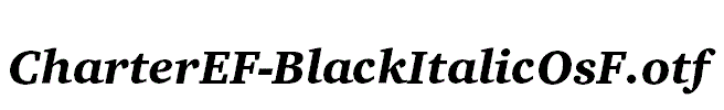 Tips:CharterEF-BlackItalicOsF.otf Font copyright belongs to the font developer. Commercial businesses must contact the copyright owner to authorize themselves, otherwise legal responsibility is borne by themselves.