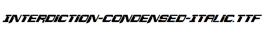 Tips:Interdiction-Condensed-Italic.ttf Font copyright belongs to the font developer. Commercial businesses must contact the copyright owner to authorize themselves, otherwise legal responsibility is borne by themselves.