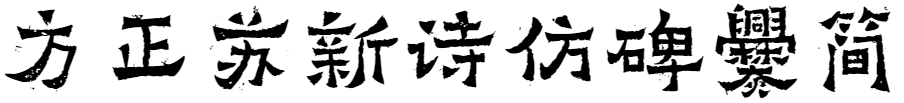 方正苏新诗仿碑爨是在标准小爨体增加了斑驳感的。字型来源于东晋《晋故振威将军建宁大守爨府君墓碑》究其渊源,因属隶变时期的作品,体势情趣、情态均在隶楷之间。奇姿异态、朴茂古厚、大巧若拙、率真硬朗、气度高华、气魄雄强。