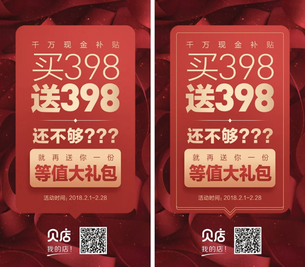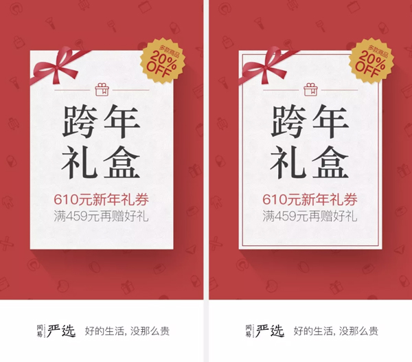 从左到右只是有无线框的差距,但在视觉上却有了很大的反差。左侧给人的感觉是:视觉元素不够整体化,且没有相互约束,反而有点杂乱,而右侧仅仅通过添加一个线框元素,就将众多元素规为一个整体,使画面整体性提升了很多。再看一个案例: