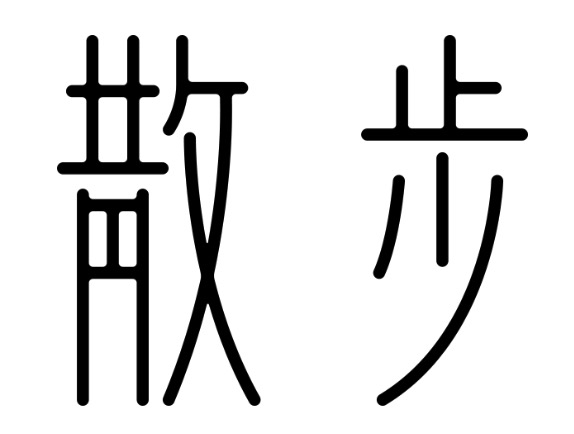 结构设定较高,负空间又比较多一点,看起来的感觉是不是很符合字义呢?其实笔画上就是常规的等线,把结构做的有特点一样可以很有范,下面是散步二字依据上字做的尝试。
