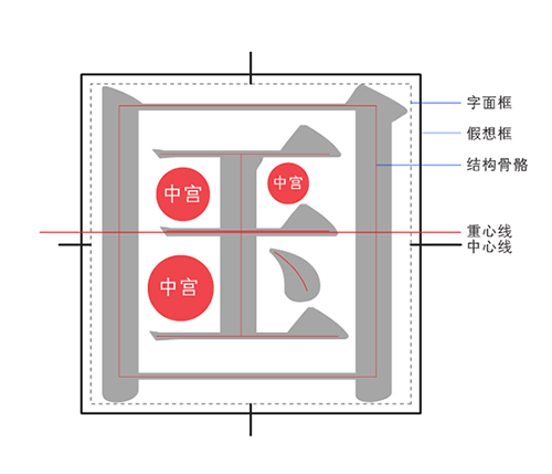 字体重心:就是整个字的分量的中心点。做字时把字的重心把握准了,做出的字才不会上歪下斜,左偏右倒,而显得平正。