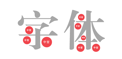 字体中宫:汉字笔画围成的空间。中宫的大小可以影响人们对字体本身的视觉感受。中宫大,笔画把字面框撑的较满,排版效果好,但容易呆板。而且字内留白大,字外围留白小,视觉上会挤压字间距,导致字间距过小,不利于阅读。中宫小,笔画排布舒展,字体看起来秀气,易于阅读。