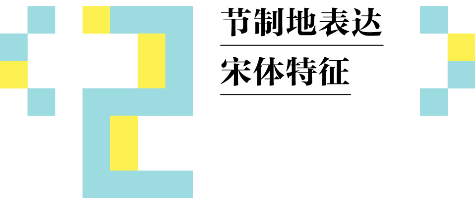 宋体与黑体最大的区别,是笔画端点处的装饰角与笔画粗细的对比,方正悠宋将传统的倒三角样式改为直角三角形样式,使得字形与像素更为契合,提高字形在屏幕上显示的清晰度。在这样的设计理念下,方正悠宋的设计拥有了黑体的特性,也更加适合矩阵式的像素排列。