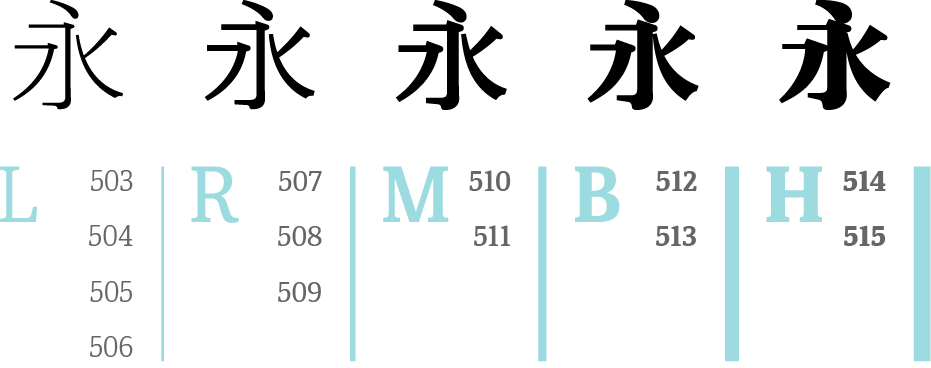 那么,就从黑体开始吧,“悠黑”的骨架加上“宋体”的特征,这就是“方正悠宋”的基本形态。