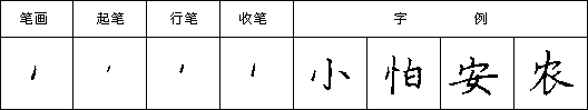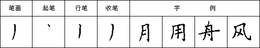 竖撇,下笔稍重,由重到轻向下行笔,行至撇的长度三分之二处,向左下撇出,收笔时出尖竖撇,下笔稍重,由重到轻向下行笔,行至撇的长度三分之二处,向左下撇出,收笔时出尖尖。如图: