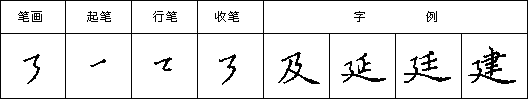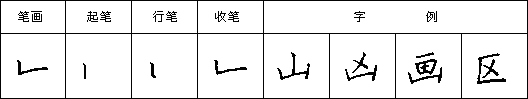 (十一)竖弯 下笔写短竖,再圆转向右水平方向写短横,收笔稍重。如图