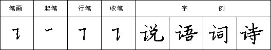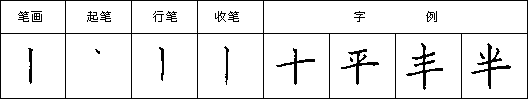 (十三)竖提 下笔写竖,到适当处略顿笔向石上写斜提,一笔写成,提的收笔处出尖。如图