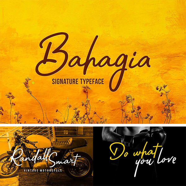 Bahagia是一种华丽的签名字体,为字体设计带来了无穷无尽的美感,在每个字母和笔画中都充满了长达数世纪的魅力和全部力量。常用于徽标,邀请,卡片,包装,并支持多种多语言。
