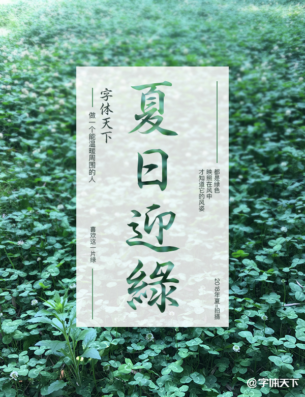 与行楷有些类似,运笔婉转悠扬,节奏抑扬顿挫,像涓涓细流,充满了文艺感。常用做作广告海报的标题字。