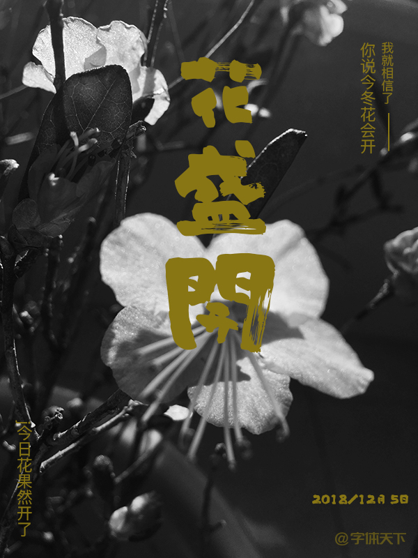 虽然是日系字体,这款字体充满了浓浓的中国风,敦厚的笔画,带一点随性和可爱,大面积的飞白,给粗重的笔画带来了呼吸透气感,整个字体像冬日枯枝上含苞待放的花朵一般。