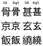 Unicode编码字库可以同时支持中、日、韩三地,但由于文化的差异,许多同一个编码的汉字的写法却不一样。因此,完美的 解决方案是分别使用三个字库支持中、日、韩三国市场的产品。以下是中国大陆与台湾字形的对比: