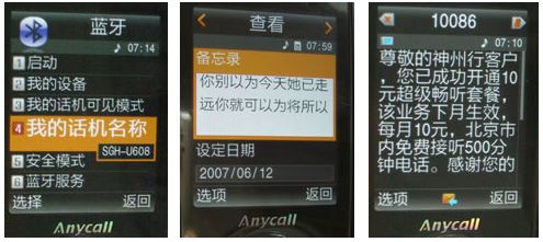 从上图可以看出,U608使用的字体字面大,笔划均匀,美观,时尚,给使用者带来清新,爽朗,便于阅读的感觉,特别是把U608和其他手机放在一起,这种感觉会更明显。