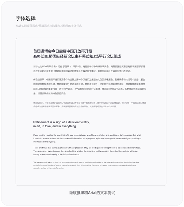 另外所有的字体都要调试出深色和浅色两种配色,并分别应用在白色底色和黑色底色当中。黑色底色展示效果不好就不做展示了。