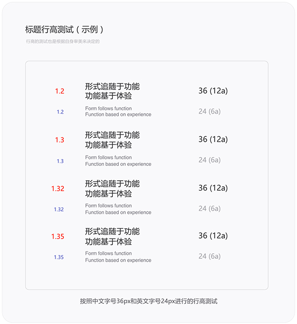 最终的行高还是由设计师直观判断决定的。所以做设计要理性中夹杂感性,规则与创意并存才是一个优秀设计师需要兼备的品质。那我就拿中文字号36px和英文字号24px来举个例子,这样大家好理解一些。如下图所示: