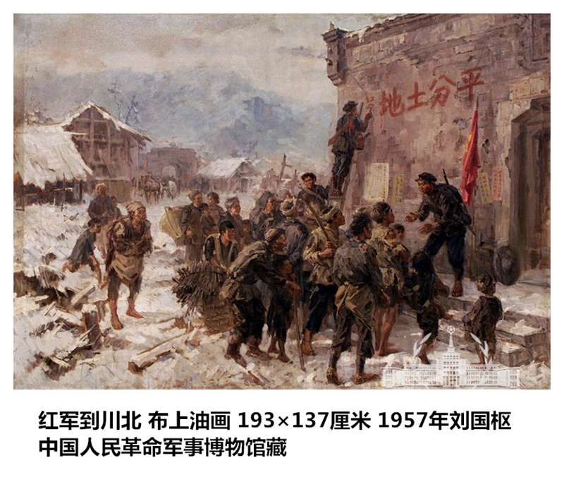 刘:那是我1959年画的。建国十周年大庆,北京搞十大建筑,有人民大会堂,历史博物馆,还有革命博物馆,军事博物馆这些。军事博物馆必须有很多军史画,上面有任务,美协就派给我,画的名字都是事先确定的。