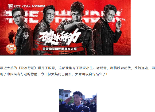 最近大热的《破冰行动》赚足了眼球,这部戏集齐了硬汉小生、老戏骨,剧情跌宕起伏,反转连连,再现了中国缉毒行动的惊险,今日份大结局已更新,大家可以自行品尝了!