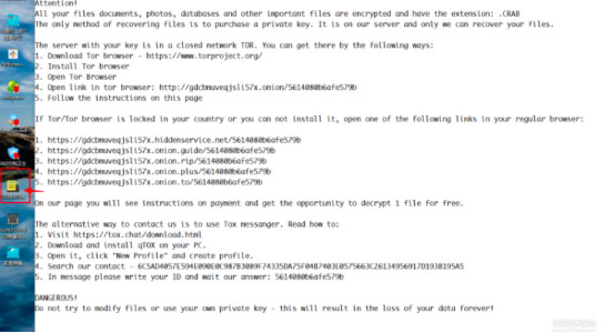 【感染之后,GandCrab2会自动生成TXT文件来显示勒索信息】